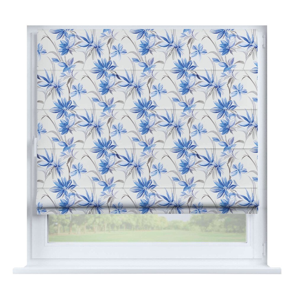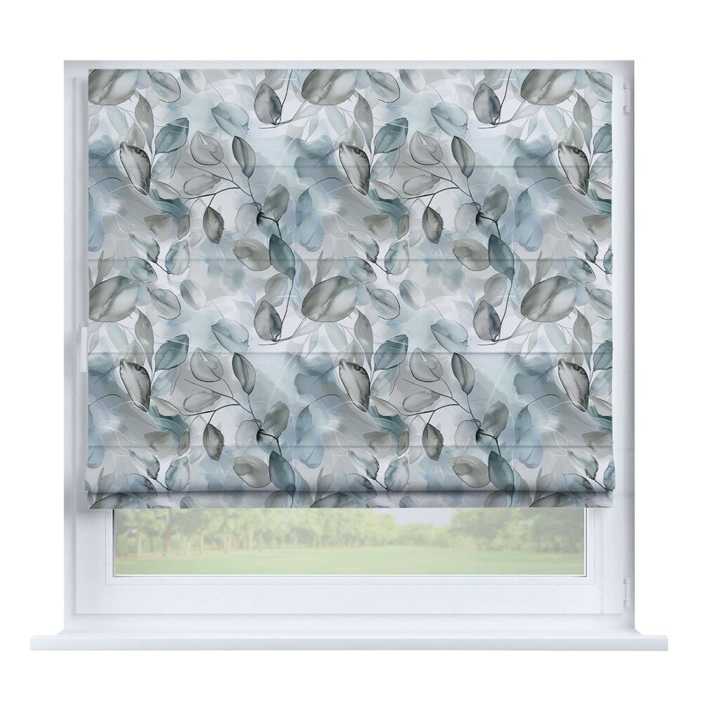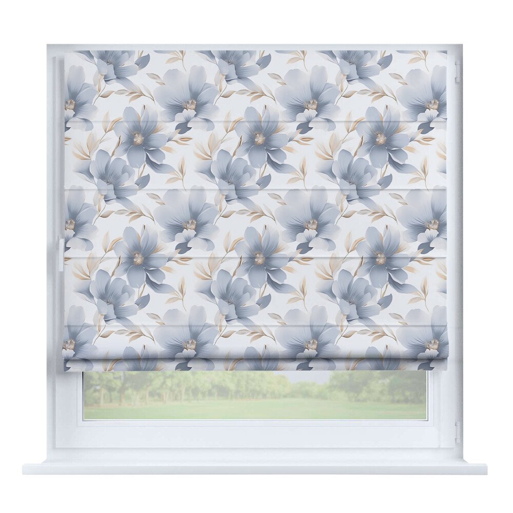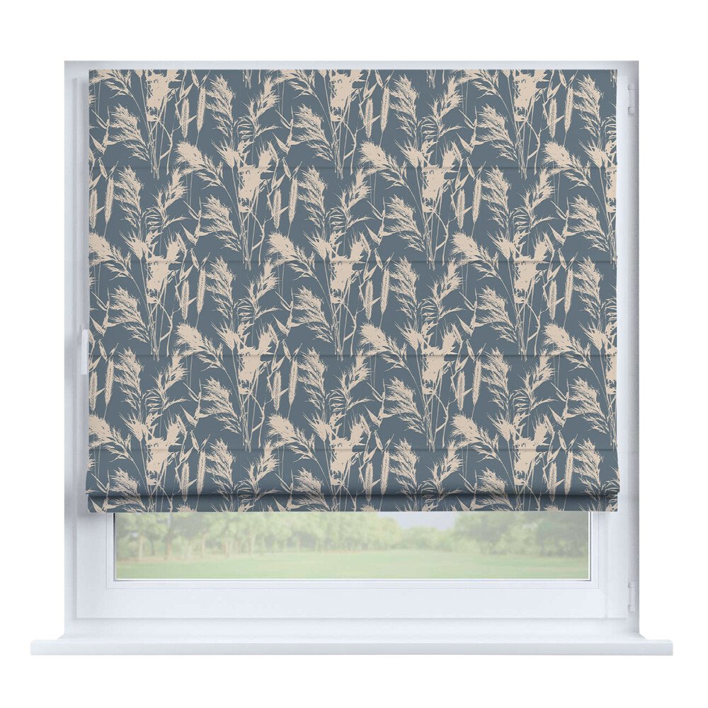 Австрийская штора лён кашемир голубой, карниз верёвочный