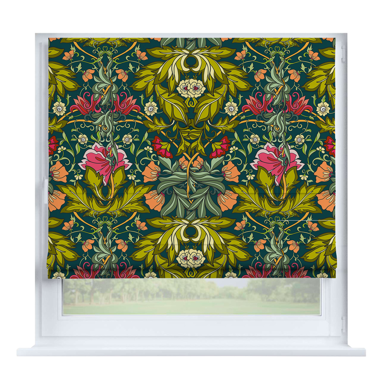 Римская штора на створку «Листья монстеры», карниз верёвочный