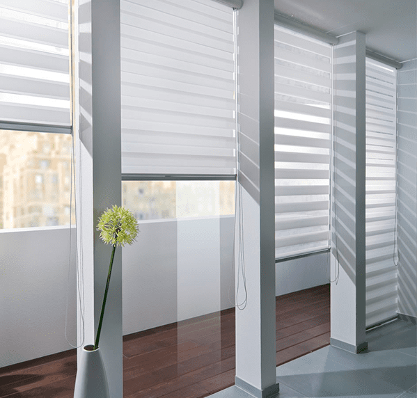 Закрытые рулонные шторы «день-ночь» – конструкция из двойного полотна, состоящего из чередующихся прозрачных и непрозрачных горизонтальных полос, которые можно сдвигать относительно друг друга для регулировки света. Тип «закрытый» означает, что механизм с валом ткани спрятан в защитный короб, который придает шторе эстетичный вид и защищает полотно от пыли и грязи.