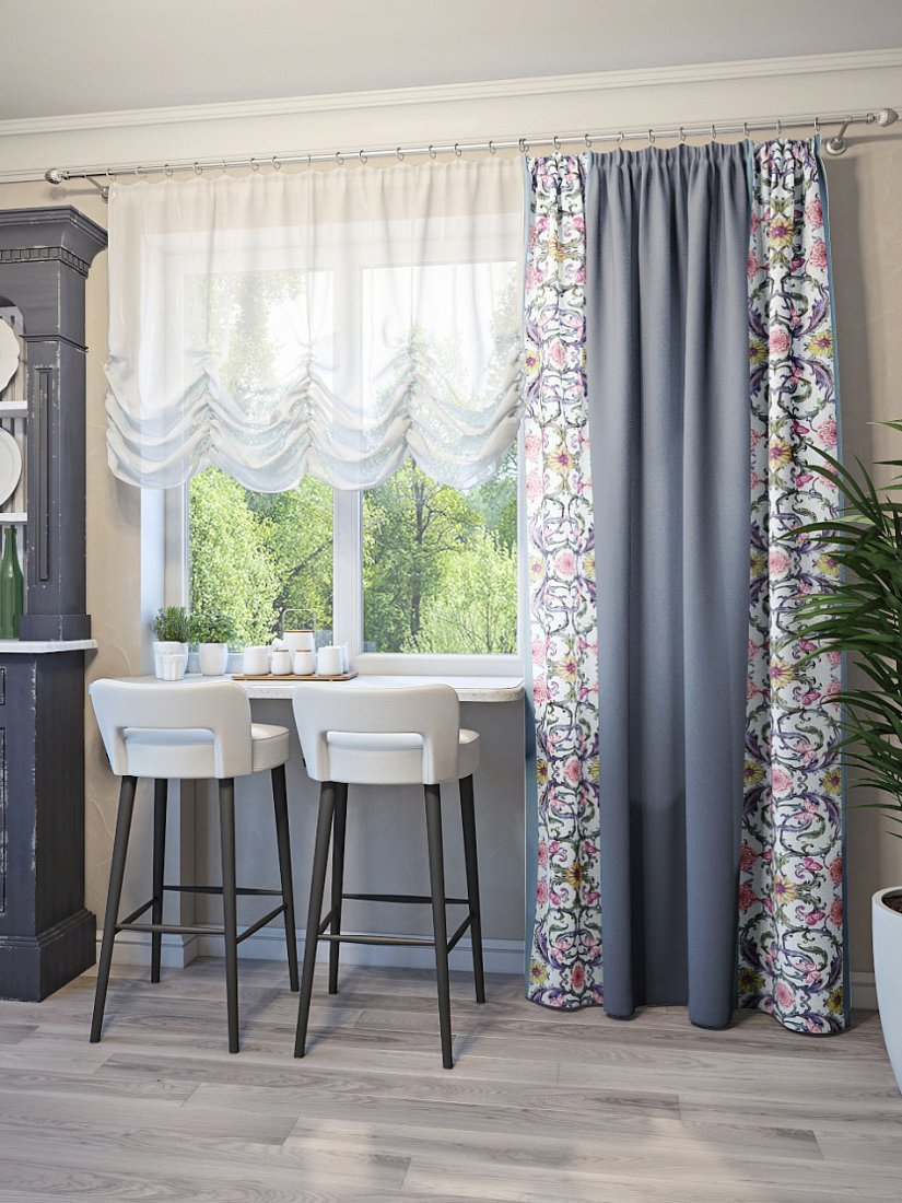- Для зонирования. С помощью занавесок в комнате можно визуально разделить пространство на функциональные зоны, например, отделить кухонную зону от зоны отдыха в кухне-гостиной.