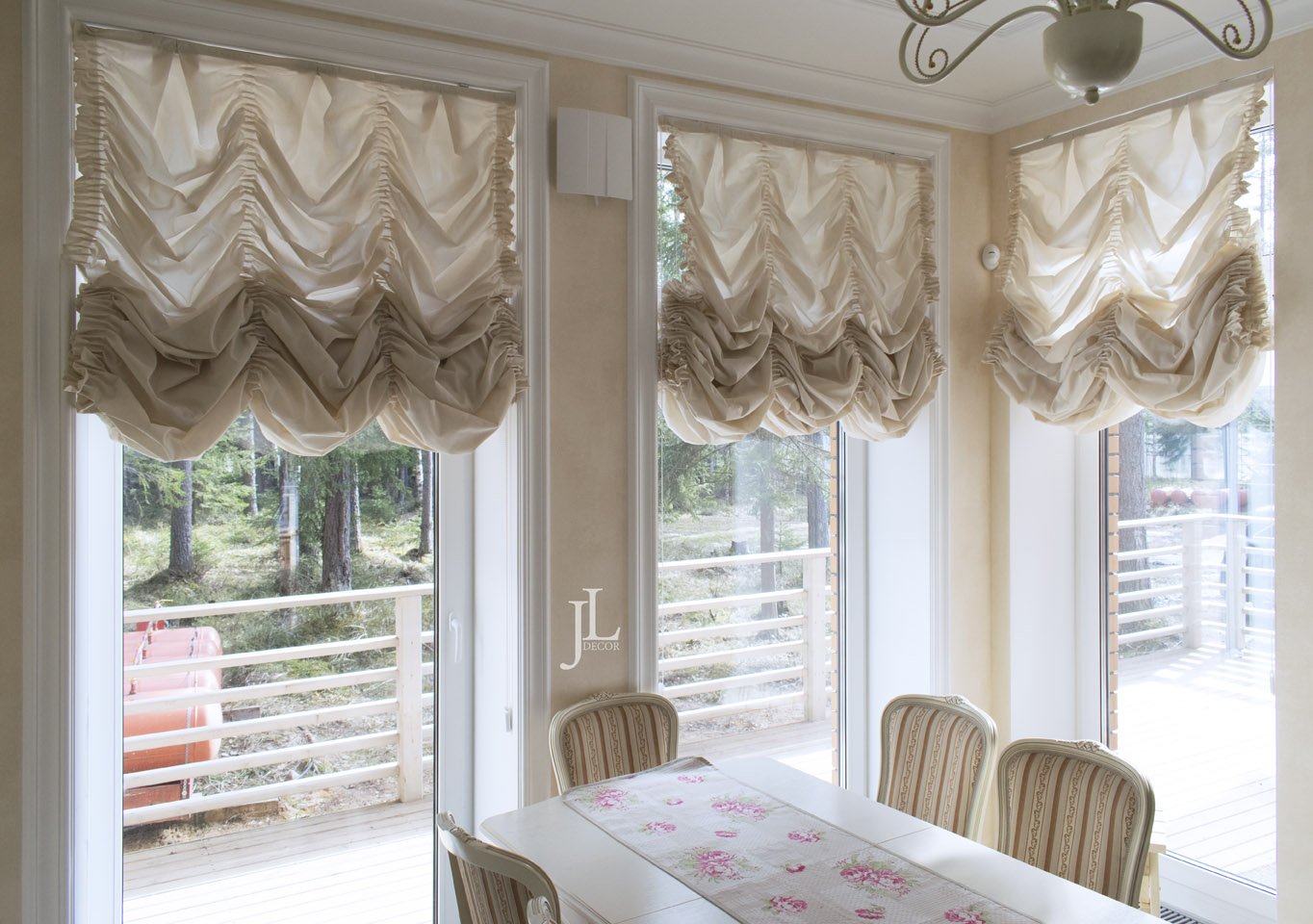 - На окне. Классическое применение занавесок на окнах для защиты от света, пыли и создания уюта в зале, гостиной, детской комнате, на балконе и в офисе.